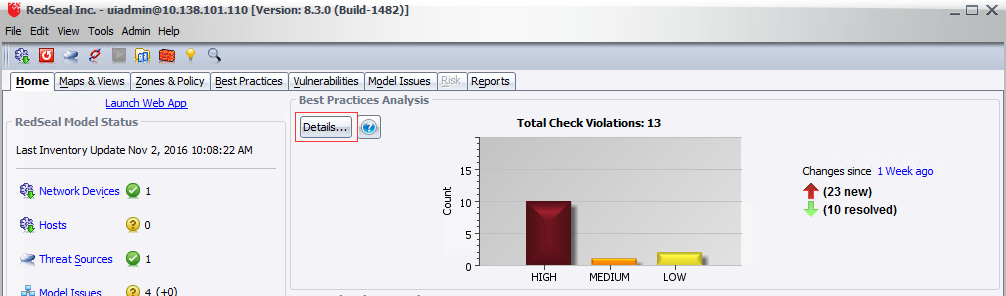 - On the Home Page, in the RedSeal Model Status Panel, click TRL.