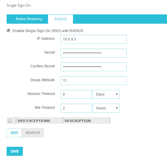 - Select the Enable Single Sign-On (SSO) with RADIUS check box.