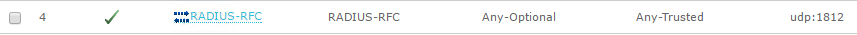 - Add a RADIUS-RFC packet filter policy for connections from Any-Optional to Any-Trusted.