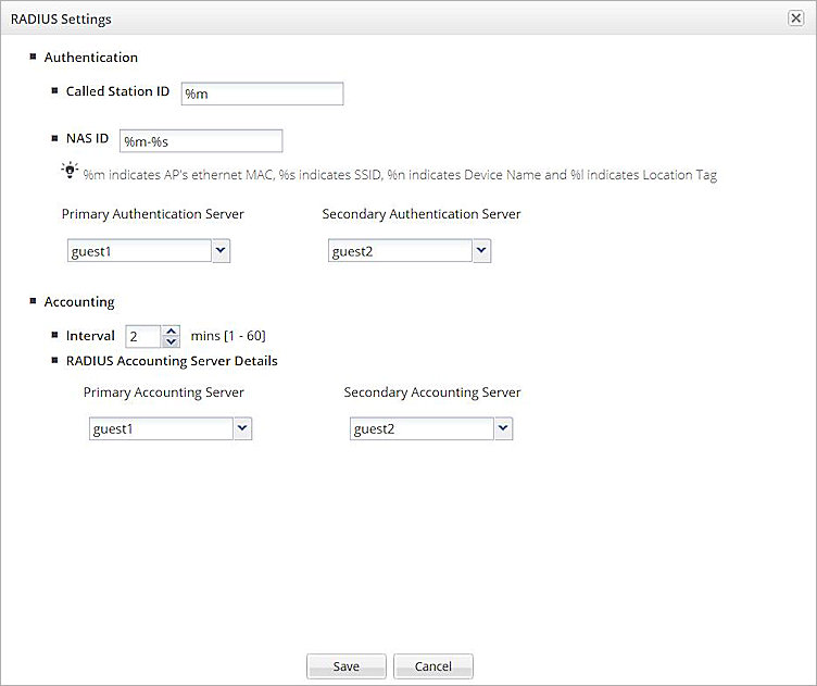 - Click Save to save the RADIUS settings