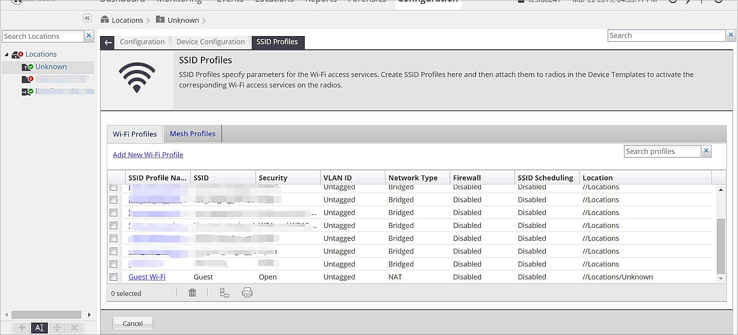 - Select Configure > WiFi, then select the SSID tab.