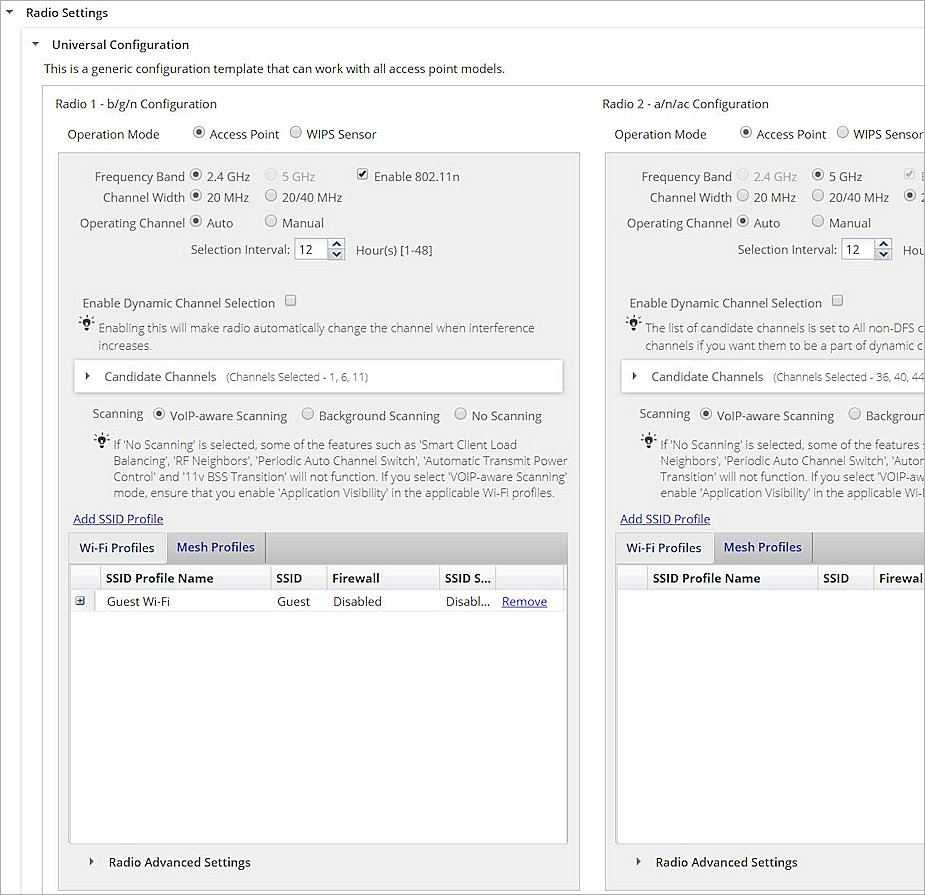 The SSID will be applied to APs in the selected location. Make sure you configure radio and device settings for your APs if you have not already configured these settings. For more information, go to Configure Radio Settings.