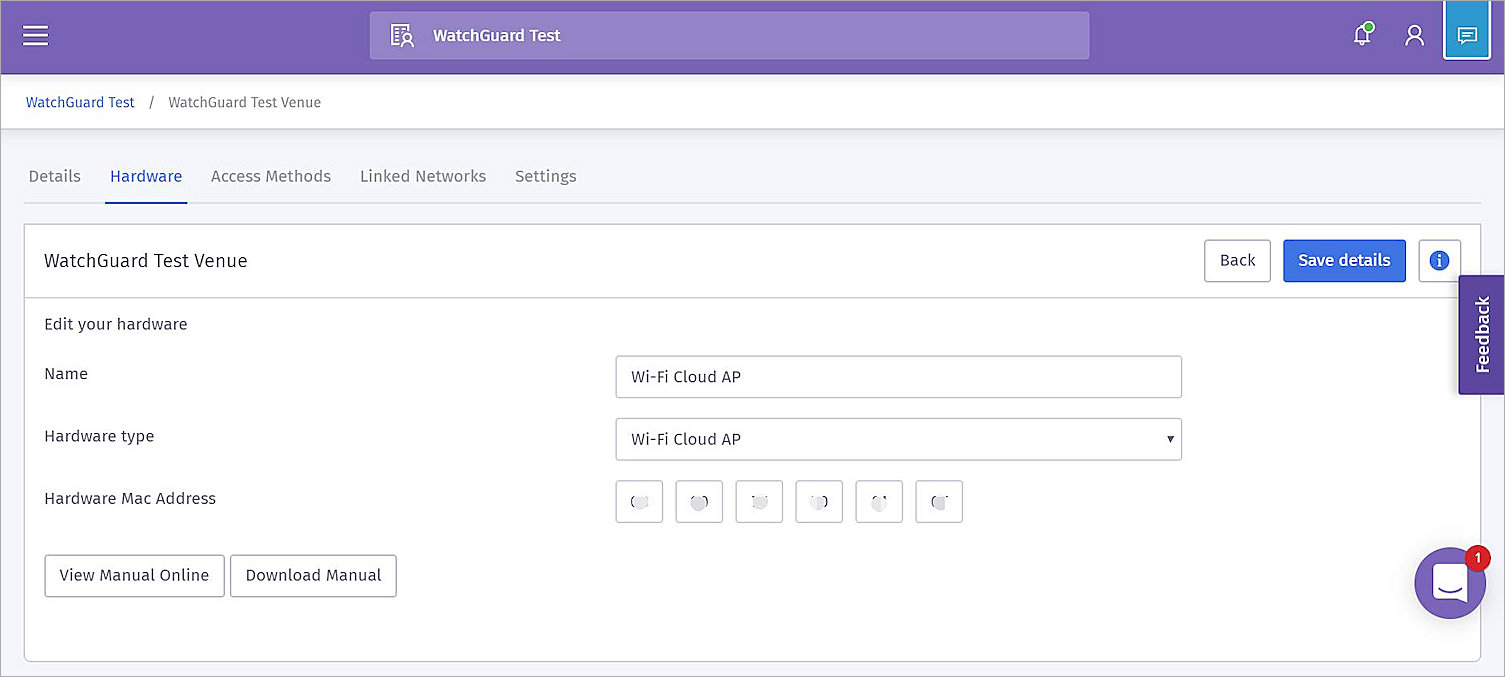 - Click View Manual Online or Download Manual to view the configuration steps and information required for the WatchGuard Wi-Fi Cloud configuration.