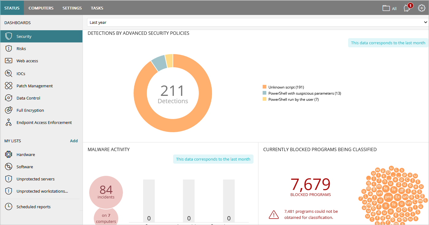 - In WatchGuard Cloud, select Monitor > Endpoint Security.