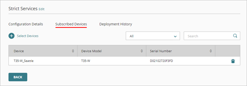 The Configuration Details page opens. - Select the Subscribed Devices tab.