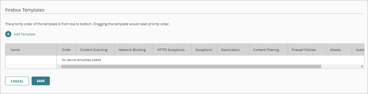 The Firebox Templates page opens. - To change the template order, click the move handle for a template and drag it up or down in the list.