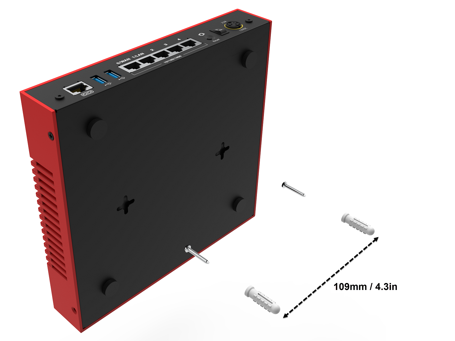 - If your Firebox uses a brick type power adapter, place the power adapter on the shelf and make sure to leave enough space on both sides of the adapter to prevent bends in the power cables.