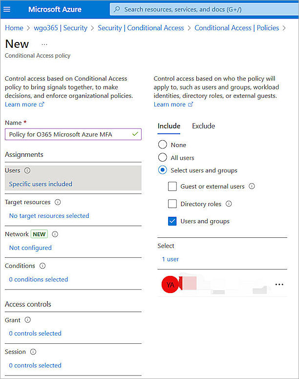 - For Users, select Include > Select users and groups.
