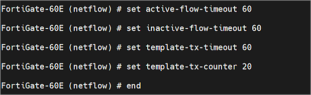 The NetFlow feature on the Fortigate 60E can only be configured in CLI mode. To configure your Fortinet firewall as a NetFlow exporter: