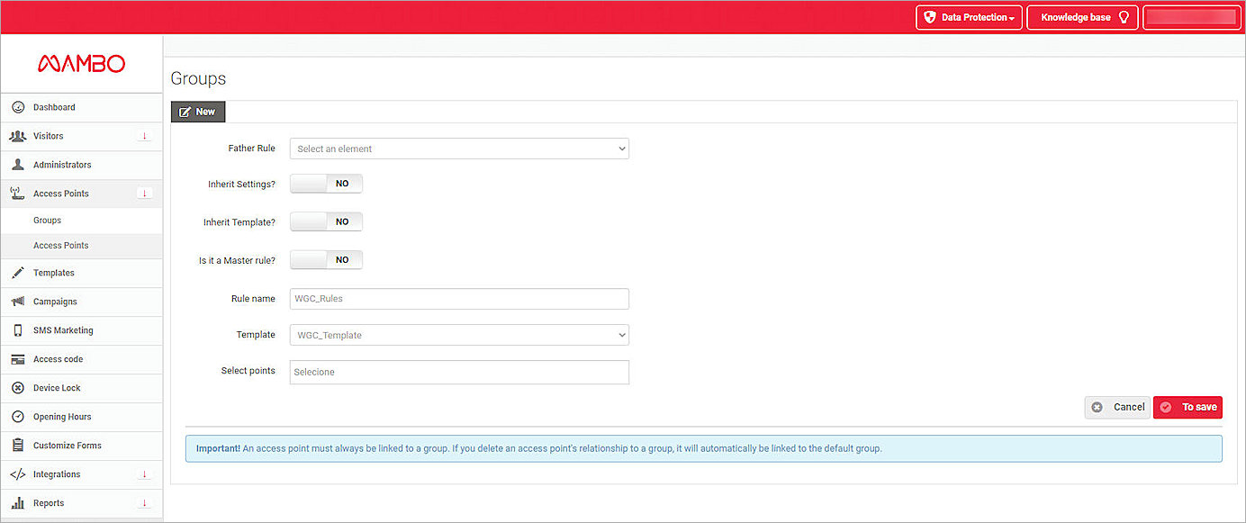 This section describes how to create a group to organize your business rules and apply the rules to one or more access points. Skip this section if you want to use the default group in Mambo Wi-Fi.