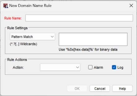 You must also configure the action to take when no domain name rule is matched. For each rule you can select one of these actions:
