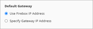 By default, the Firebox IP address is the default gateway. To specify a different IP address as the default gateway, select Specify Gateway IP Address and type the IP address.
