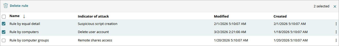 When you exclude a signal that is an IOA, Endpoint Security creates an automatic IOA deletion rule. You can edit the rule to make it more general or specific, to apply only to certain computers or groups, or to avoid IOA detections that meet certain characteristics.