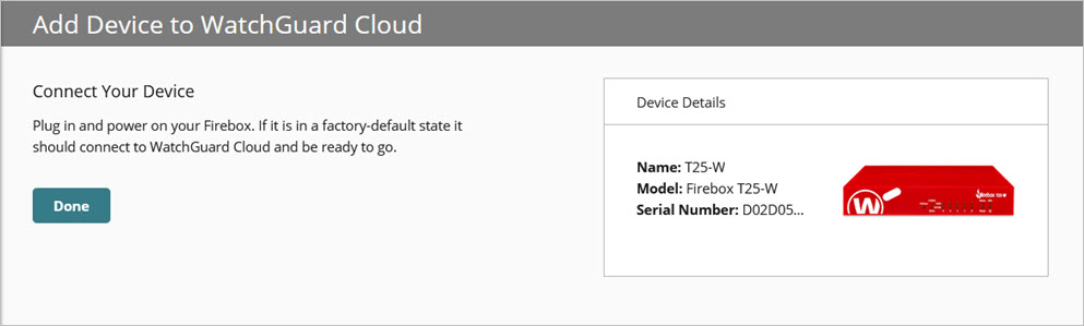 To add a Firebox to WatchGuard Cloud as a cloud-managed device: