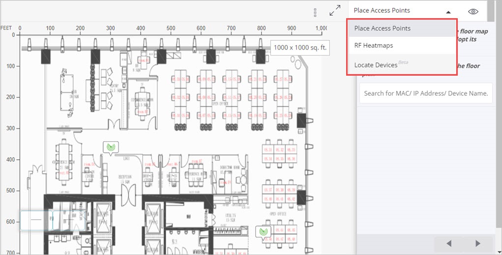 - From the right panel, drag and drop APs to their location on the floor plan.