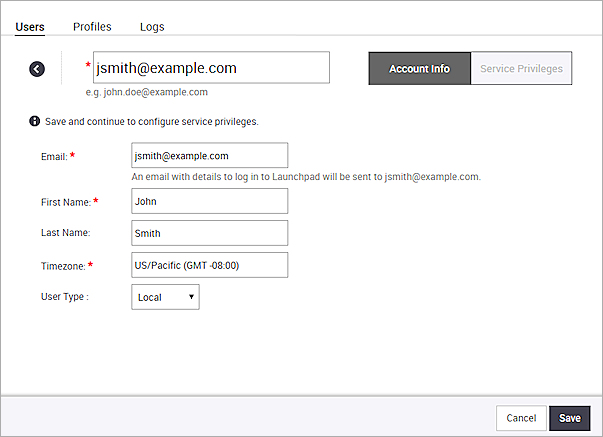 You can add additional secondary users for your account that are local to Wi-Fi Cloud. You can use these accounts with profiles and service privileges to delegate specific Wi-Fi Cloud management functions to the user.