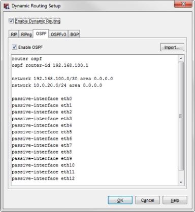 Cada archivo de configuración de ejemplo contiene una configuración de dynamic routing que usa las direcciones IP de los diagramas de topología en este documento. La configuración de dynamic routing entre los dos Firebox es la misma, independientemente del tipo de conexión de la red privada primaria. Para ver la configuración de dynamic routing para los dos sitios en este ejemplo, use Policy Manager para abrir los archivos de ejemplo para los protocolos de dynamic routing relevantes.