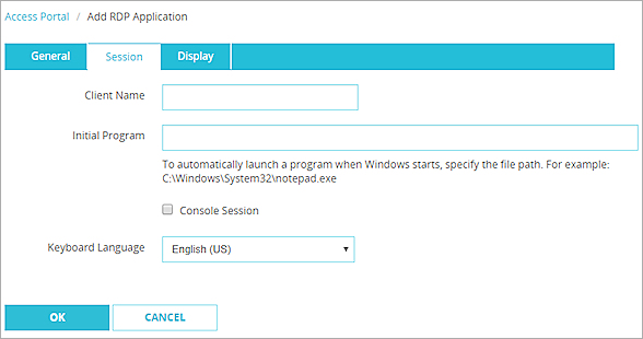 - (Opcional) En el cuadro de texto Nombre del Cliente, especifique el nombre para el host RDP que se usará para identificar al cliente RDP.