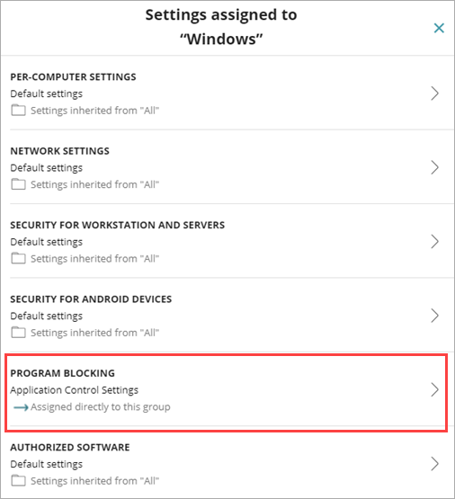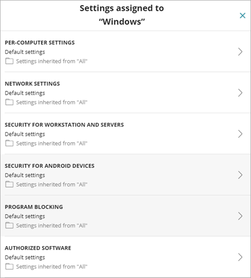 Para ver ejemplos de cómo funciona la herencia de ajustes en WatchGuard Endpoint Security, consulta Ejemplos de Reglas de Herencia.