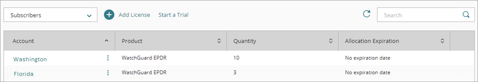 Para asignar una licencia de suscripción a una cuenta, en WatchGuard Cloud: