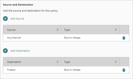 - En la lista Alias Integrados, selecciona Firebox.