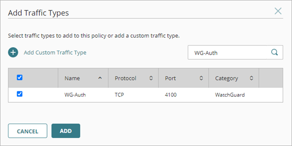 - Selecciona el tipo de tráfico de WG-Auth.
