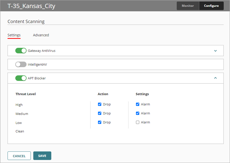 Para habilitar APT Blocker, primero debes habilitar Gateway AntiVirus.