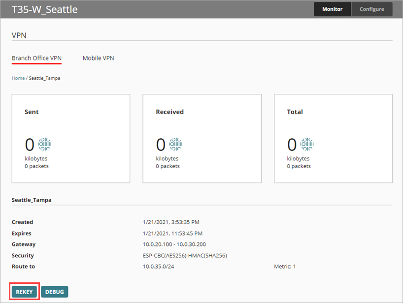 - En la tabla VPN de Sucursal, en la tabla de detalles, haz clic en el nombre del túnel.
