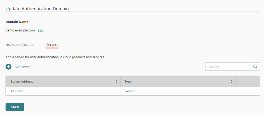 Cuando añades un dominio de autenticación, debes especificar un servidor de autenticación. Si tu dominio de autenticación tiene varios servidores de autenticación, puedes añadir los otros servidores al dominio de autenticación en WatchGuard Cloud.