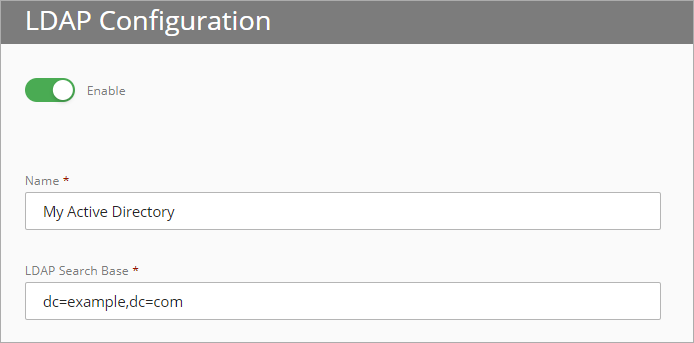 - En el cuadro de texto Base de Búsqueda de LDAP, escribe tu base de datos de LDAP. En este ejemplo, el dominio es example.com, por lo que escribimos dc=example,dc=com. ¡Consejo!