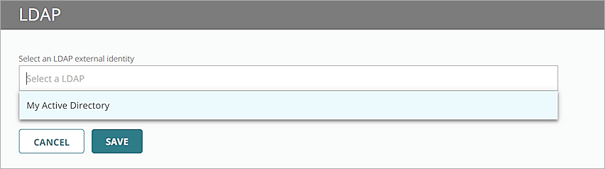 - En la lista desplegable Elegir un Tipo de Identidad Externa, selecciona LDAP. Haz clic en Añadir Identidad Externa.