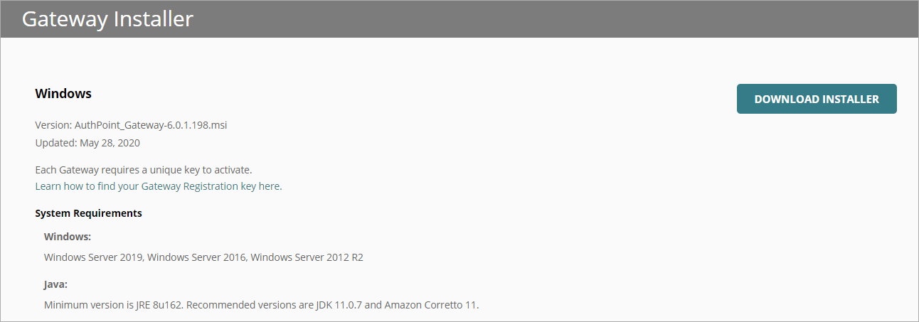 - En la sección Instalador de Gateway, haz clic en Descargar Instalador.