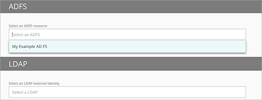 - En la sección ADFS, en la lista Seleccionar un recurso ADFS, selecciona tu recurso ADFS.