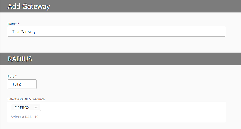 También puede usar Gateways secundarias como servidor RADIUS de respaldo. La única limitación es que el dispositivo o el software de terceros que envían solicitudes de autenticación a la Gateway deben admitir el uso de servidores RADIUS adicionales.