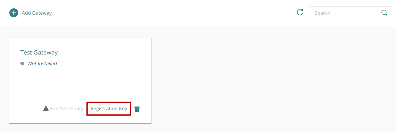 - En la parte inferior del mosaico de tu Gateway, haz clic en Clave de Registro.
