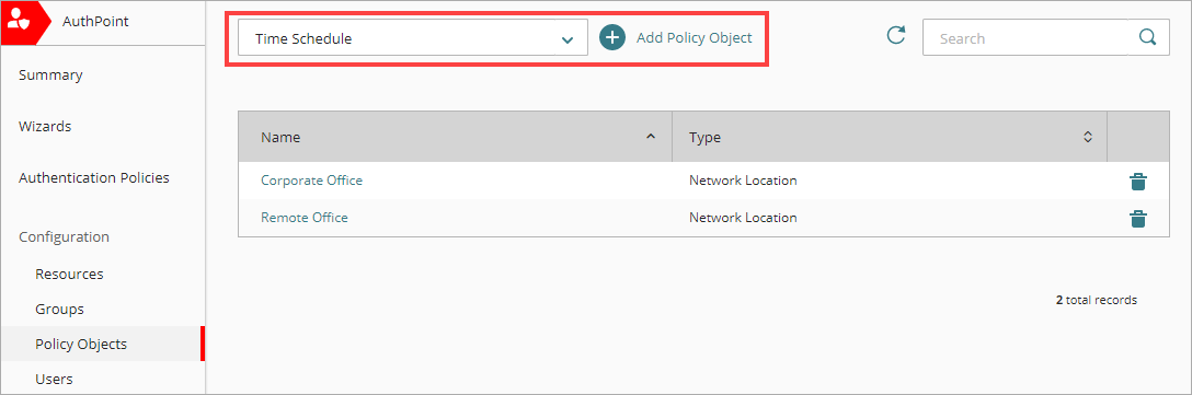 - En el menú de navegación de AuthPoint, selecciona Objetos de Política.