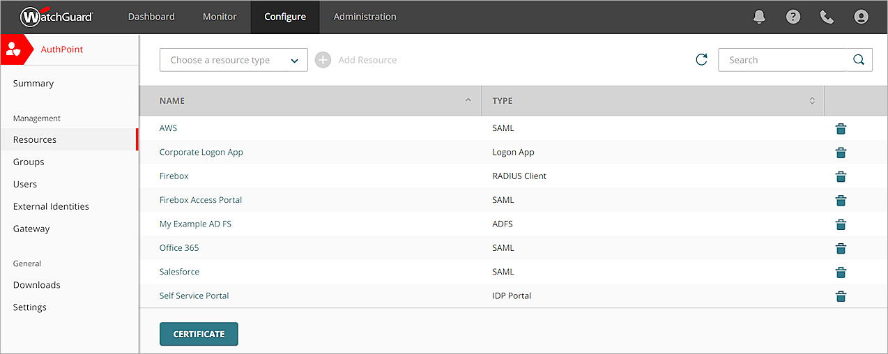 Para añadir un recurso SAML, en la AuthPoint management UI: