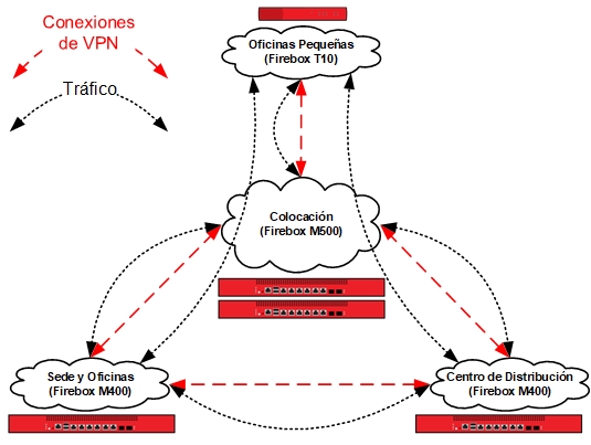 El número de túneles VPN está determinado por el número de redes conectadas (según se configure en las rutas de túneles). Para las oficinas, esto es generalmente el número de redes locales multiplicadas por el número de redes remotas. Para la ubicación central, esta es la suma total del número de túneles en todas las demás ubicaciones.