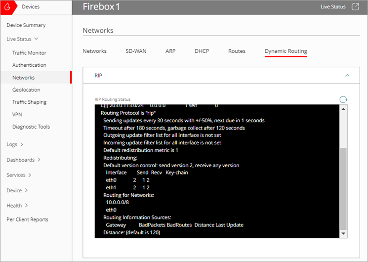 Se abre la página Resumen de Dispositivo para el Firebox seleccionado. - Seleccione Estado en Vivo > Redes.