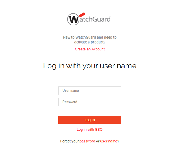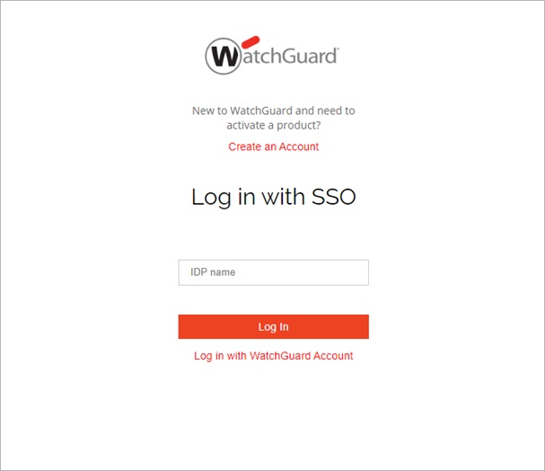 Debe iniciar sesión directamente en los servicios de WatchGuard. SSO de SAML para cuentas de WatchGuard no admite el inicio de sesión del proveedor de identidad.