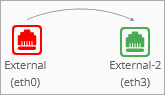 Para una acción de SD-WAN que utiliza el método de Conmutación por Error, o para Multi-WAN Global, una flecha indica que una red ha conmutado por error a otra red.