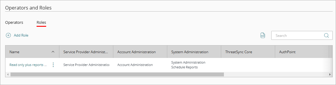 Pour exporter une liste de rôles d'opérateur vers un fichier .CSV, à partir de WatchGuard Cloud :