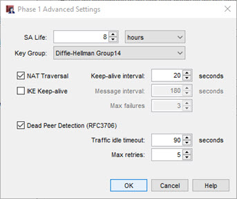 Vous pouvez définir des paramètres de phase 1 avancés pour votre profil d'utilisateur Mobile VPN.