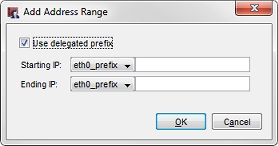 Le nom de préfixe délégué apparait dans la première partie des zones de texte Adresse IP de Début et Adresse IP de Fin.