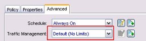 Vous pouvez également définir les limites de vitesse de connexion pour une stratégie dans l'onglet Avancé. Pour plus d'informations, consultez Définir des Limites de Vitesse de Connexion.