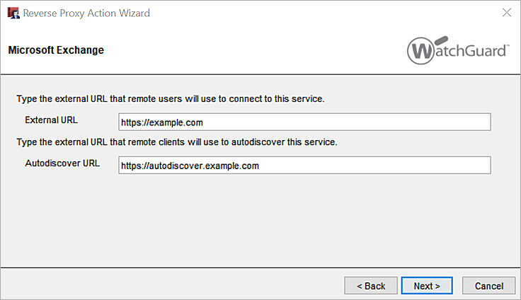 Vous pouvez également configurer une action de proxy inverse pour Microsoft Exchange. Pour se connecter aux services Exchange, les utilisateurs distants peuvent se connecter à une URL externe par l'une de ces méthodes :
