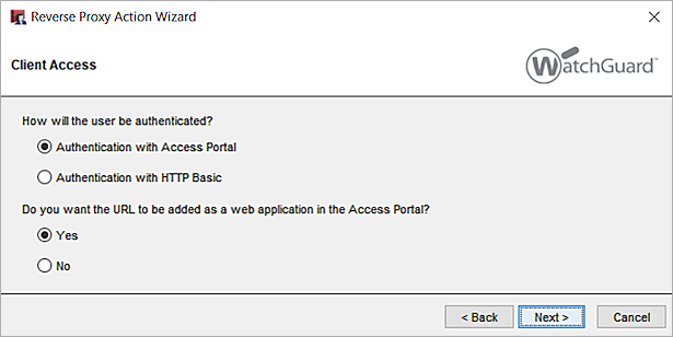 - Choisissez d'authentifier les utilisateurs avec Access Portal ou HTTP Basic.