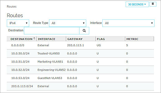 - Pour filtrer la liste selon les routes d'une interface, dans la liste déroulante Interface, sélectionnez une interface.