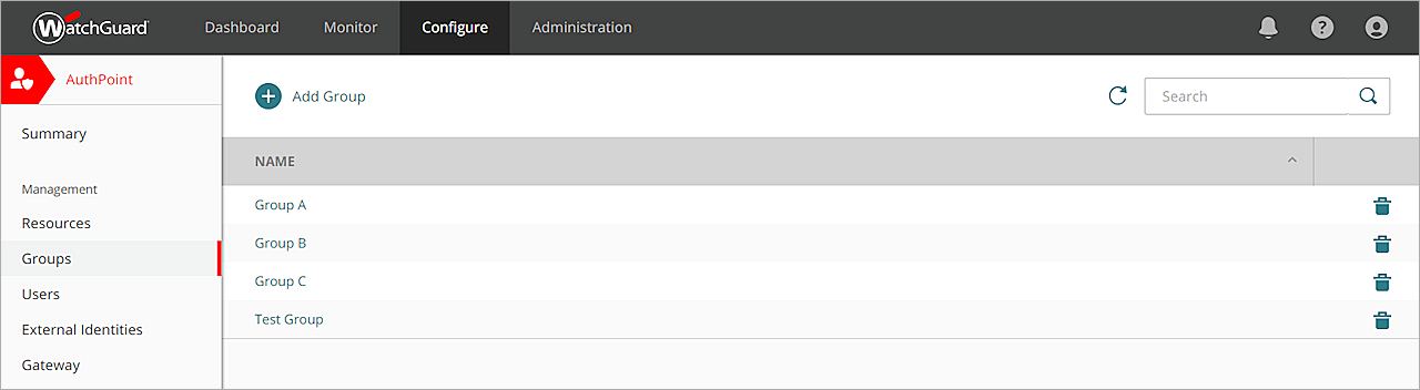 - AuthPoint ナビゲーション メニューから グループ を選択します。