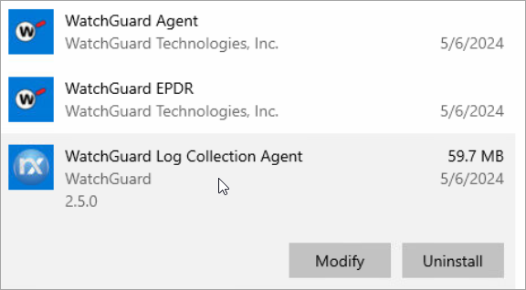 WatchGuard エージェントをコレクターとともに削除する方法については、次を参照してください:Windows 用 ThreatSync+ NDR 収集エージェントを削除する または Linux 用 ThreatSync+ NDR 収集エージェントを削除する